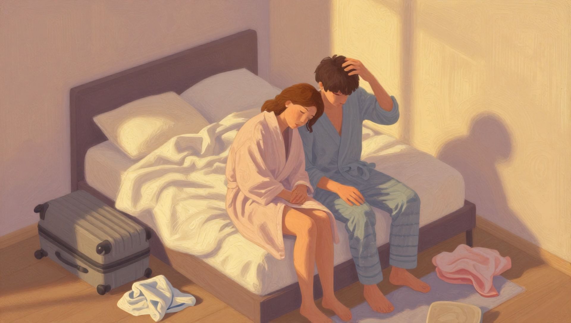 The bedroom becomes a battlefield of avoidance. "I'm too tired" becomes the default response, until even asking feels like a rejection waiting to happen. Physical touch becomes transactional—quick pecks on the cheek, obligatory hugs. The passionate, messy, raw intimacy you once had? It's a distant memory.
